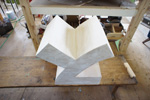 ROOTS FACTORY代表 阪井さんの仕事場の顔も見学しつつ、色塗り前の「スイス」を発見。曲線まで見事に再現されてました。