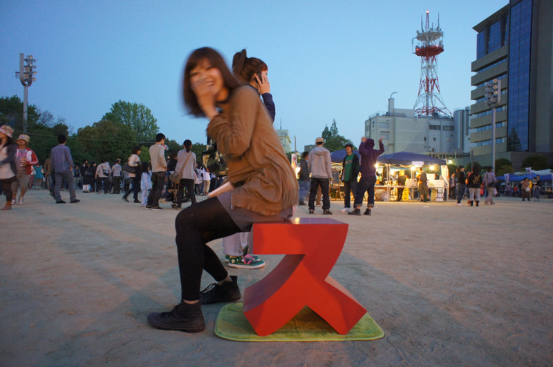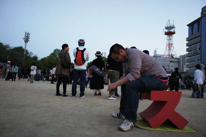 そしてその夜には、茨木音楽祭本会場でのゲリラ展示が行われ、多くの人に座り心地を楽しんでもらいました。