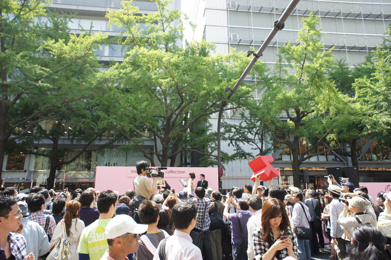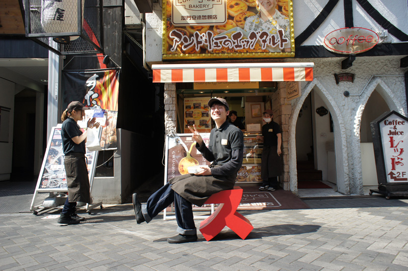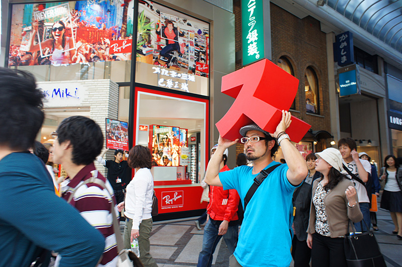 “たまたま”スイスを持って買い物に来た感じで、御堂筋を縦断しながらいろんな人に座っていただきました。